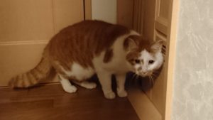 最近よく来る猫がいます。 今度は茶白のブチ猫です。