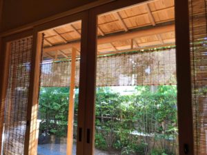 お庭にある腰掛待合は、丸柱を立て、庇を深く出し