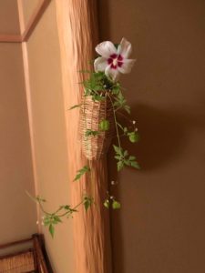 掛け軸や季節の茶花が飾られ、心地の良い空気感を